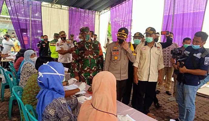 Dandim 0812/Lamongan, Letkol Inf Sidik Wiyono, Bupati Lamongan, H. Fadeli bersama AKBP Harun menggelar sidak ke sejumlah tempat pemungutan suara yang tersebar di beberapa Desa.