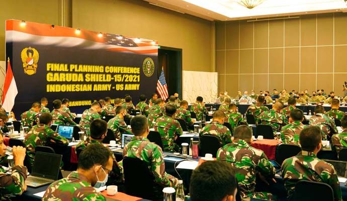 INILAHONLINE.COM, MERAUKE – Latihan Bersama Garuda Shield 15/2021 akan menjadi latihan bersama antara TNI AD dan US Army yang terbesar sepanjang sejarah kerja sama antara kedua negara. Dankodiklatad Letjen TNI AM. Putranto, S.Sos. selaku Komandan Latihan memberikan pengarahan kepada peserta Final Planning Conference (FPC) di Ballroom Hotel Hilton Bandung. Rabu (9/6/2021).