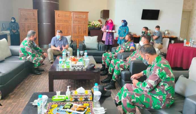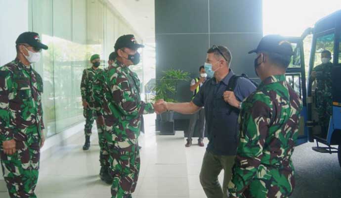 Komandan Kodiklatad Letjen TNI AM. Putranto, S.Sos. menyambut kedatangan Commander of 25th Infantry Division US Army, Brigadier General Joseph A. Ryan di Ruang VIP Bandara Sultan Aji Muhammad Sulaiman Sepinggan, Balikpapan. Senin (9/8/2021)