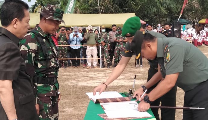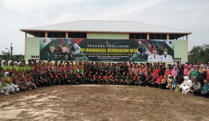 Komandan Korem (Danrem) 042/Garuda Putih, Kolonel Arh Elphis Rudy secara resmi menutup program TNI Manunggal Membangun Desa (TMMD) Reguler Ke-105 Kodim 0415/Batanghari di Desa Ladang Peris, Kecamatan Bajubang, Kabupaten Batanghari, Kamis (8/8/2019).