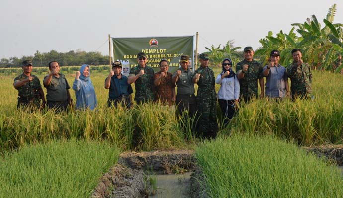 Komandan Korem 071/Wijayakusuma Kolonel Kav Dani Wardhana, S.Sos., M.M., M.Han., pada Selasa (23/7/2019) lakukan kunjungan pengecekan lahan demplot padi menggunakan pupuk Wijayakusuma Nutrition di Desa Karangreja, Kec.Tanjung, Kab.Brebes.