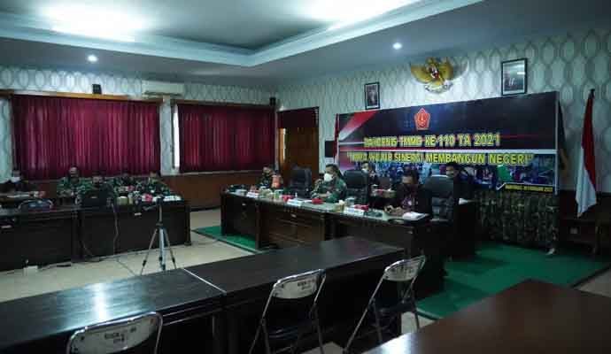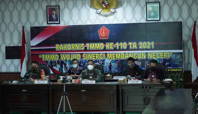 Asisten Teritorial Kepala Staf TNI Angkatan Darat dalam amanatnya menyampaikan ucapan terima kasih kepada para Kasdam, Danrem dan Dandim yang mengikuti Rakornis TMMD Reg ke-110 ini. Pada pelaksanaan TMMD Reg 110 ini, Angkatan Darat bekerjasama dengan Kemenkes dalam hal Ditjen Kesmas untuk berkontribusi dalam mensukseskan pelaksnaan TMMD Reg 110 tahun 2021. Kodam jajaran TNI AD siap memberikan pengabdian terbaiknya untuk negeri melalui kegiatan TNI Manunggal Membangun Desa (TMMD) berupa Operasi Bakti TNI yang dilaksanakan secara terpadu dan lintas sektoral bersama Kementerian, Lembaga Pemerintah Non Kementerian, Pemerintah Daerah serta Komponen Masyarakat, sebagai upaya untuk mendukung percepatan pembangunan di daerah.