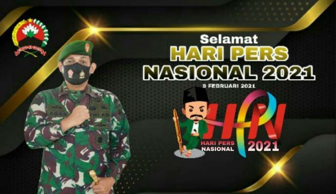 Komandan Korem 071/Wijayakusuma Kolonel Inf Dwi Lagan Safrudin, S.I.P., dalam rangka memperingati Hari Pers Nasional (HPN) Tahun 2021, menyampaikan selamat dan sukses kepada segenap insan Pers dimanapun berada dan bertugas di wilayah NKRI, dan khususnya di wilayah jajaran Korem 071/Wijayakusuma.