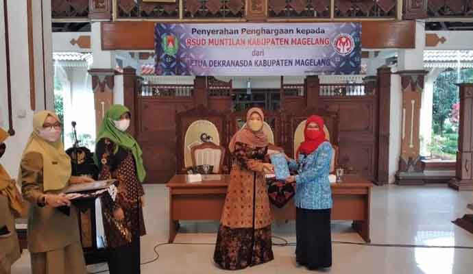 INILAHONLINE.COM, MAGELANG — Dewan Kerajinan Nasional Daerah (Dekranasda) Kabupaten Magelang, memberikan penghargaan kepada RSUD Muntilan. Penghargaan diberikan karena telah menggunakan dan memberdayakan produk dari para pengrajin batik lokal “Sawud Sewu” Kabupaten Magelang.