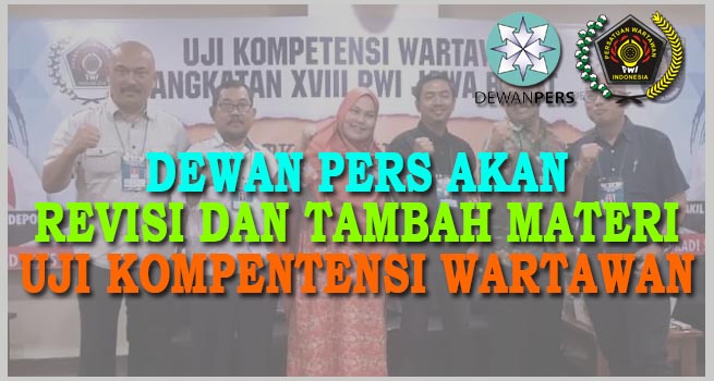 Terdapat beberapa hal yang perlu penegasan. Pertama, materi uji Kode Etik Jurnalistik (KEJ)/Undang-undang Nomor 40 Tahun 1999 tentang Pers/ Undang-Undang Nomor 32 Tahun 2002 tentang Penyiaran/Pedoman Perilaku Penyiaran dan Standar Program Siaran (P3SPS)/Pedoman Pemberitaan Media Siber (PPMS) resmi menjadi materi uji setiap Uji Kompetensi Wartawan mulai 2 Januari 2019.