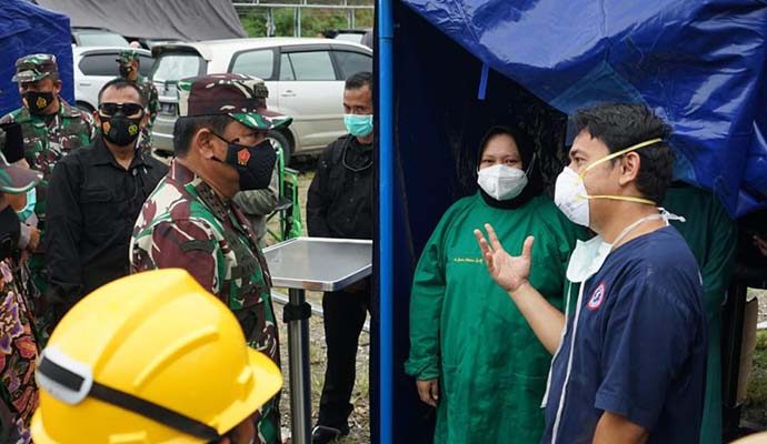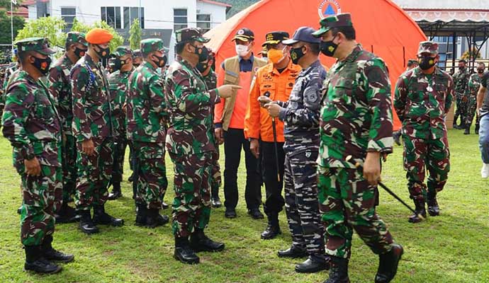 “Saat ini TNI terus mempersiapkan langkah-langkah berikutnya, langkah evakuasi korban sudah dilaksanakan. Kemudian langkah berikutnya adalah memberikan pelayanan kesehatan kepada para korban, untuk itu dalam beberapa hari nanti akan kita hadirkan KRI dr. Soeharso, kebetulan saya lihat Lanal kondisinya bagus tidak ada kerusakan. Bagi korban patah tulang, termasuk korban-korban akibat yang lain bisa dirawat atau dioperasi apabila perlu di KRI Soeharso,” terang Panglima TNI.