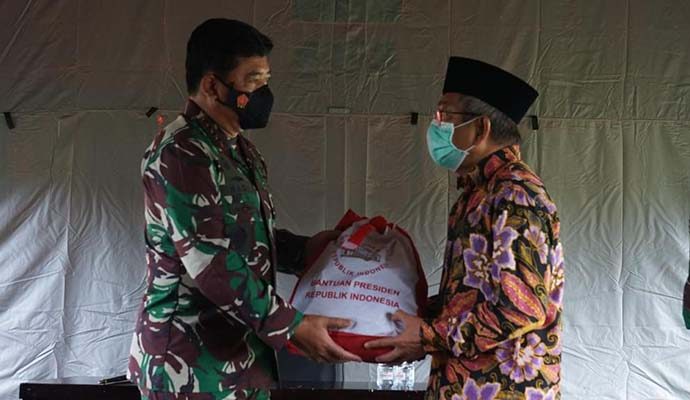 Panglima TNI menekankan pengawalan dari aparat TNI-Polri sampai bantuan tersebut benar-benar sampai ke gudang dan petugas segera mendistribusikan karena masyarakat memerlukan bantuan tersebut.
