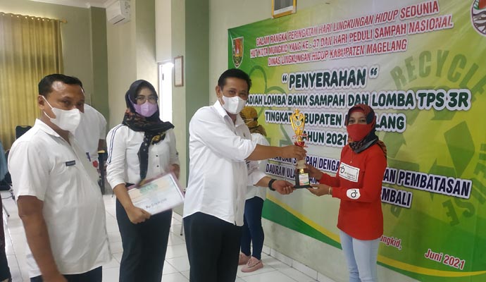 “Peran Bank Sampah dan TPS3R di tengah pandemic Covid – 19 ini, sangat penting, maka harus tetap dilestarikan dan di jaga,” kata Kepala Dinas Ligkungan Hidup (DLH) Kabupaten Magelang, Sarifudin SH didampingi Kasi Kebersihan DLH, Soko Wibowo SE, pada menyerahkan penghargaan dan uang pembinaan kepada enam juara, baik Bank Sampah maupun TPS3R, di Aula DLH, Rabu (30/6-2021).
