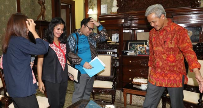 Mahendra Aji Pratama dan Novi, dua mahasiswa tingkat akhir Prodi Hubungan Internasional dari Universitas Paramadina Jakarta secara khusus mendatangi kediaman Gubernur Jawa Tengah, Ganjar Pranowo di Puri Gedeh Kota Semarang, Selasa (13/11). Mereka datang untuk melakukan wawancara penelitian terkait keberhasilan Ganjar dalam memimpin Provinsi ini.