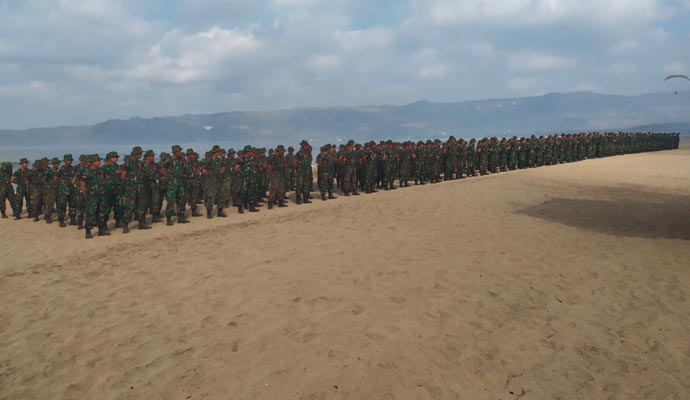 TNI-AD, khususnya Kodim 0801/Pacitan bersinergi dengan Pemda dan TNI-AU menggelar bersih-bersih serentak yang ditujukan di Pantai Pancer Door Kabupaten Pacitan, Jawa Timur. Jumat (30/8/2019).