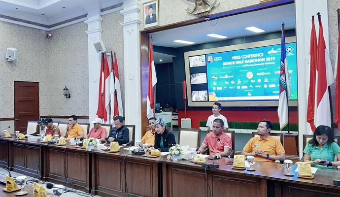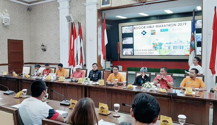 Wali Kota Bogor dalam konferensi pers di Balai Kota Bogor, Sabtu (20/7/2019), menyatakan siap mendukung kegiatan Bogor Half Marathon yang akan dipusatkan di Kebun Raya Bogor.