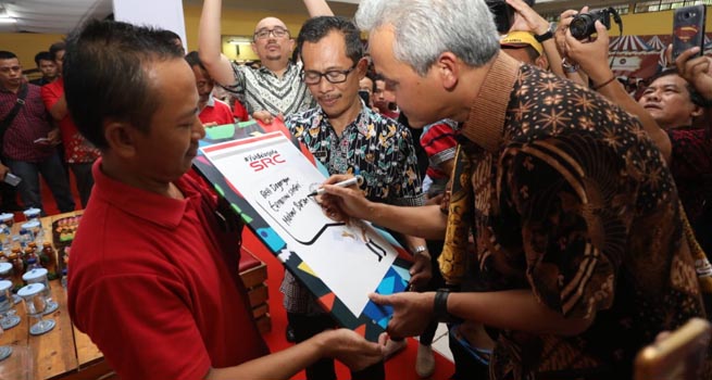 “Sekarang kita kampanye ‘belilah produk temanmu, tuku dagangane koncomu’,” kata Ganjar.