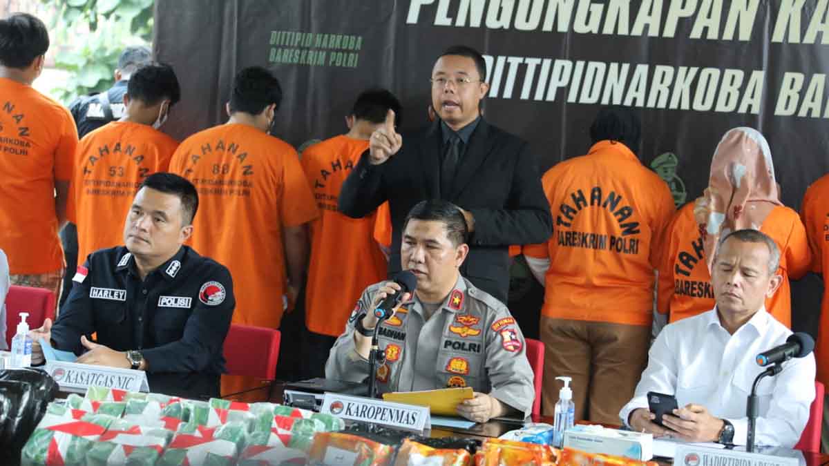 INILAHONLINE.COM, JAKARTA — Direktorat Tindak Pidana Narkoba (Dittipidnarkoba) Bareskrim Polri berhasil mengungkap tujuh kasus peredaran gelap narkoba yang terjadi di Batam, Medan, hingga Riau. Sebanyak 75 kg narkotika jenis sabu-sabu, ekstasi, hingga obat sediaan farmasi, yakni ketamin, diamankan.