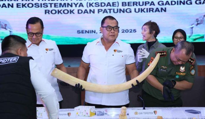 INILAHONLINE.COM, JAKARTA — Direktorat Tindak Pidana Tertentu (Dittipidter) Bareskrim Polri berhasil mengungkap tindak pidana perdagangan ilegal bagian tubuh satwa dilindungi berupa gading gajah, dalam sebuah rangkaian operasi yang dilakukan di dua lokasi berbeda, yakni Sukabumi, Jawa Barat dan Jakarta Selatan.