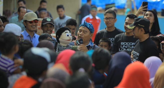 Dalam kesempatan tersebut, Bima Arya dan tim mengunjungi tiga titik lokasi pengungsian, yakni di desa Sembalun Lawang, Sembalun Bumbung dan Sajang. Tidak sekedar menyalurkan donasi, Bima Arya juga mengajak pendongeng asal Bogor bernama Syamsul Yusuf alias Kak Syam.