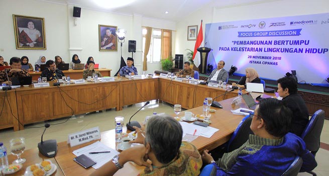 Walikota Bogor Bima Arya menjadi salah satu pembicara dalam Focus group discussion (FGD) bertajuk ‘Pembangunan Bertumpu Pada Kelestarian Lingkungan Hidup’ di Istana Presiden Cipanas, Cianjur, Rabu (28/11/2018).