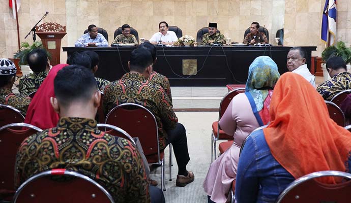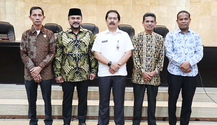 Asisten Administrasi Umum (Asum) Setda Kota Bogor, Achsin Prasetyo menerima kunjungan kerja (kunker) dari dua daerah Provinsi Aceh, yakni dari Komisi III dan IV DPRK Kota Langsa dan Komisi A dan E DPRK Kabupaten Bireuen di Paseban Sri Baduga, Balai Kota Bogor, Kamis (21/02/2019).