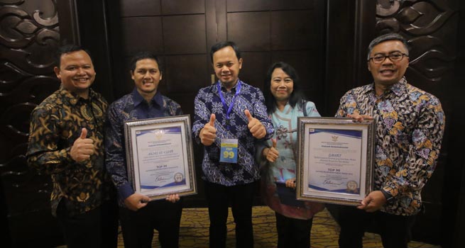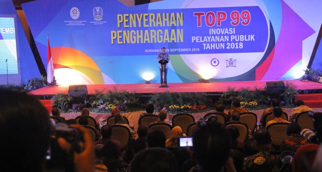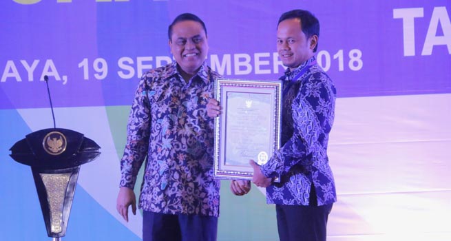 Penghargaan tersebut diserahkan Menteri Pendayagunaan Aparatur Negara dan Reformasi Birokrasi (Menpan RB) Syafruddin di Grand Ballroom, Hotel Shangri La Surabaya, jalan Mayjen Sungkono 120, Surabaya, Rabu (19/09/2018) malam.