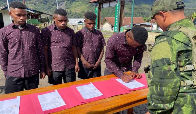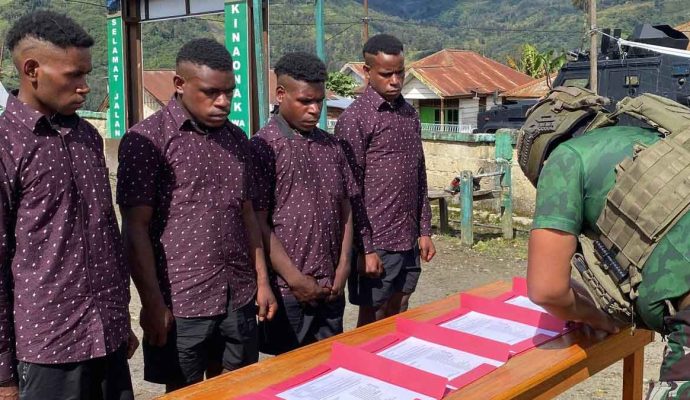 INILAHONLINE.COM, PUNCAK-PAPUA TENGAH — Komitmen TNI dalam membangun perdamaian dan memperkuat persatuan di Tanah Papua kembali membuahkan hasil. Empat mantan anggota kelompok separatis bersenjata Organisasi Papua Merdeka (OPM) dari Kodap III Sinak secara resmi menyatakan ikrar kesetiaan kepada Negara Kesatuan Republik Indonesia (NKRI), pada Rabu (9/7/2025), di halaman Kantor Koramil 1717-02/Sinak, Kabupaten Puncak, Papua Tengah.