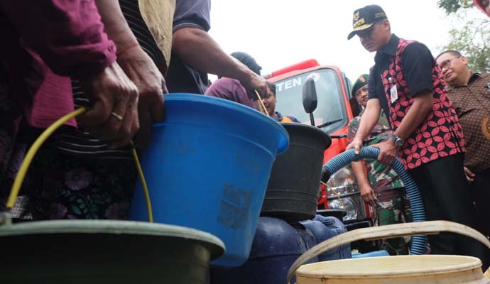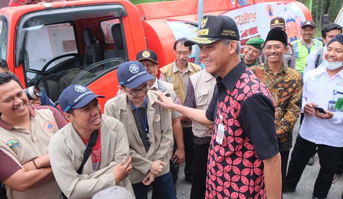 Sementara itu, penyaluran bantuan air bersih yang dilakukan Ganjar disambut antusias masyarakat. Mereka berbaris antre dengan membawa ember untuk mendapat giliran jatah air.