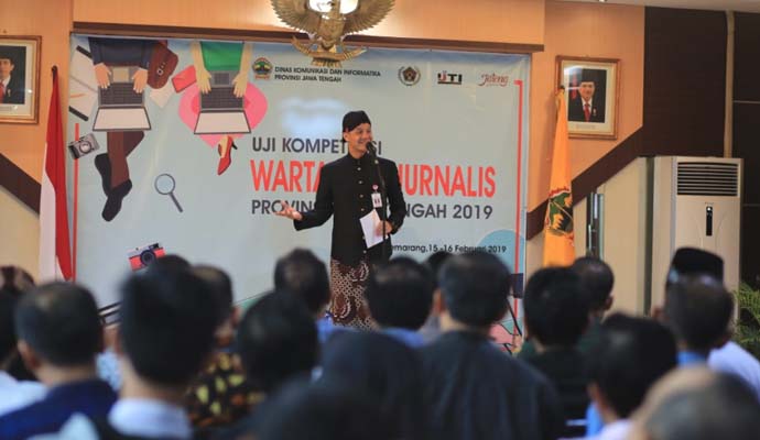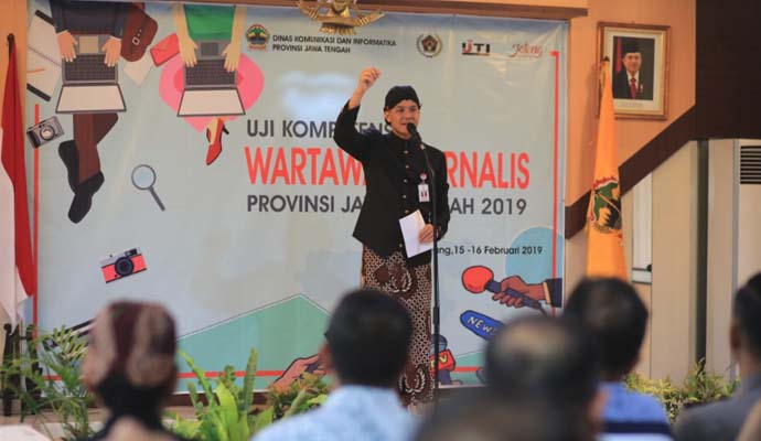 Itulah doa Gubernur Jateng Ganjar Pranowo saat membuka Uji Kompetensi Wartawan (UKW) yang digelar Persatuan Wartawan Indonesia (PWI) Jateng dan Ikatan Jurnalis Televisi Indonesia (IJTI) Jateng bekerjasama dengan Dinas Komunikasi dan Informatika (Diskominfo) Jateng, Jumat (15/2) pagi.