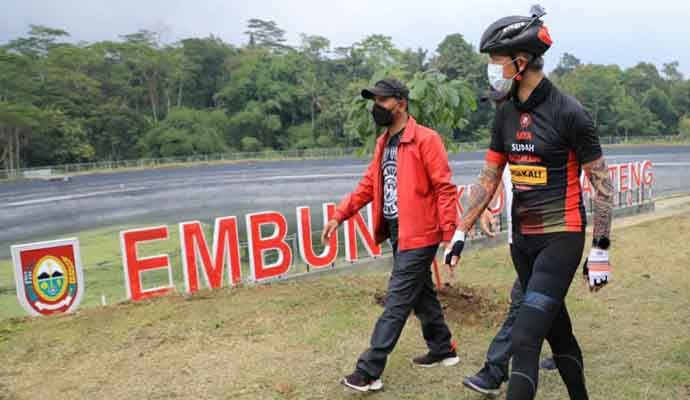 “Ini menjadi inspirasi. Jadi Embung Kedung Banteng ini harapan kita nanti akan menjadi tempat pariwisata. Kalau kita lihat inspirasinya adalah banyak tempat galian C yang rusak atau mungkin ditinggalkan, ternyata kalau kita tata ulang bisa menjadi tempat yang bagus. Ini nanti akan menjadi tempat pariwisata,” kata Ganjar yang datang ke lokasi sambil gowes bersama istri Siti Atikoh Ganjar.