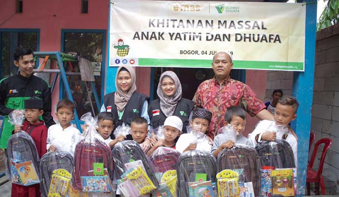 Salsabila selaku tim Fundrising Corporate Partnership, mengutarakan dalam sambutannya bahwa gelaran Khitan Massal kali ini adalah program donasi khusus dari E-Mas.com (sebuah aplikasi belanja online emas), kepada Dompet Dhuafa. Kerja sama ini dimulai sejak bulan Mei lalu sebagai program Ramadhan 1440 H/2019. Melalui program LPM (Lembaga Pelayan Masyarakat) Dompet Dhuafa, “Jadilah hasil donasi tersebut berupa Khitan Massal untuk anak-anak yatim dan dhuafa hari ini. Tak hanya itu, kami juga membagikan bingkisan School Kits untuk anak-anak agar selalu bersemangat belajar,” ujar Salsabila.