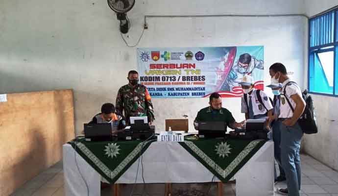 Disampaikan Pjs. Pasi Ops Kodim 0713 Brebes, Kapten Arhanud Suryadi SH, capaian vaksinasi di SMA tersebut adalah 100 persen dari target 200 dosis/orang.