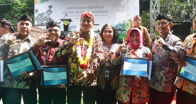 Di antara geopark nasional yang ada di Indonesia, beberapa sudah mendapat pengakuan dari organisasi pendidikan, ilmu pengetahuan dan budaya Perserikatan Bangsa-Bangsa (UNESCO Global Geopark), termasuk Geopark Gunung Batur, Gunung Sewu, Ciletuh dan Gunung Rinjani.