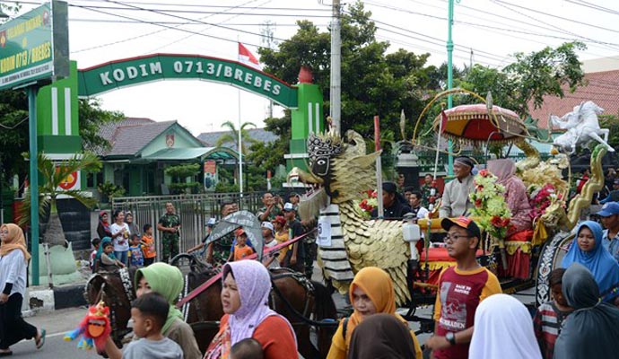 Termasuk Dandim 0713 Brebes, Letkol Inf. Faisal Amri, SE bersama Ketua Persit Kartika Chandra Kirana Cabang XXIII, berkesempatan menyapa masyarakat Brebes yang hadir dengan mengendarai kereta kencana, dibelakang Bupati kemudian Wakil, Narjo, SH.