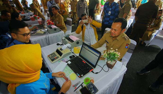 Sebelumnya, Wali Kota Bogor Bima Arya memberikan sambutan dalam pembukaan Pekan Panutan PBB P2 di Plaza Balai Kota Bogor, Senin (1/4/2019). Bima Arya berpesan kepada seluruh ASN di lingkungan Pemerintah Kota Bogor agar menjadi teladan dan terdepan dalam hal pembayaran pajak.