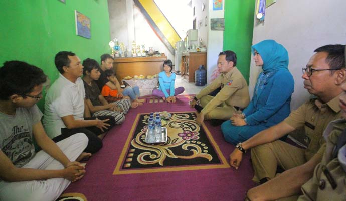 Didampingi Ketua TP PKK Kota Bogor Yane Ardian, Kepala Dinas Pendidikan (Disdik) Fahrudin, Camat Bogor Barat Pupung W. Purnama dan Lurah Curug Wiwi, Bima mengunjungi keluarga Endang Sutisna berlokasi di Bogor Country Blok FJ 2 No.12 A, Kelurahan Curug, Kecamatan Bogor Barat.