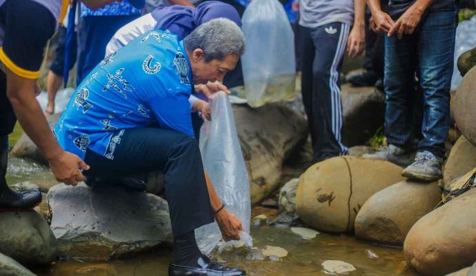 “Sehingga tidak hanya memberikan perhatian terhadap kecukupan gizi, tapi dalam pemerhati lingkungan dan konsen terhadap pelestarian lingkungan. Makanya kami sangat bangga pak wali bersedia untuk mengikuti restocking pelepasliaran ikan,” ujarnya