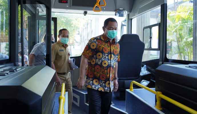INILAHONLINE.COM, SEMARANG — Berbagai terobosan diupayakan Wali Kota Semarang, Hendrar Prihadi untuk menyempurnakan pembangunan kota cerdas berkelanjutan, yang digagasnya sejak tahun 2013. Terbaru, Wali Kota Semarang yang akrab disapa Hendi ini melakukan uji coba bus listrik, untuk dapat digunakan di wilayah yang dipimpinnya, Senin (20/9).