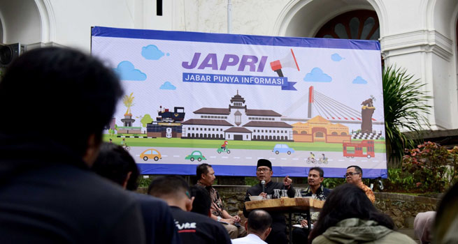 Biro Humas dan Protokol Setda Provinsi Jawa Barat menggelar acara press conference yang dikemas santai namun informatif dengan tajuk JAPRI (Jabar Punya Informasi) di Taman Barat Gedung Sate, Jl. Diponegoro No. 22, Kota Bandung, Kamis (27/9/18) sore.