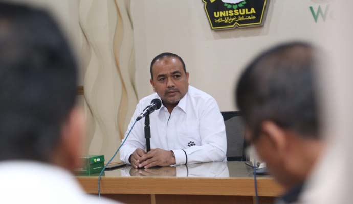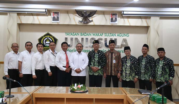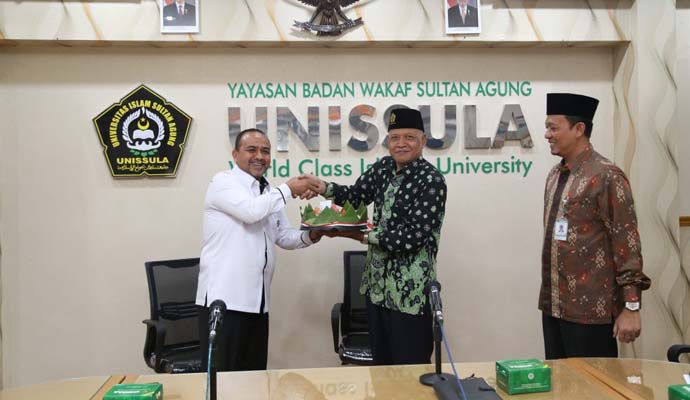 Turut hadir menyambut dalam kesempatan tersebut antara lain Dekan Fakultas Agama Islam Muhtar Arifin MLib dan para pejabat Unissula lainnya.