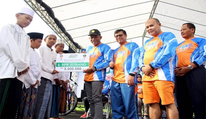 Dalam rangka memeriahkan HUT Ke-13 PT BPR Subang Gemi Nastiti (Perseroda) Subang menggelar aneka kegiatan, diantaranya Berspeda santai Fun Bike, launching Tabungan Umroh dan santunan kepada santri Pondok Pesantren Raudhatul Hasanah yang berlangsung di depan kantor Cabang Bank BPR Subang Jalan Pejuang 45 (eks Pasar Panjang), Sabtu pekan lalu.