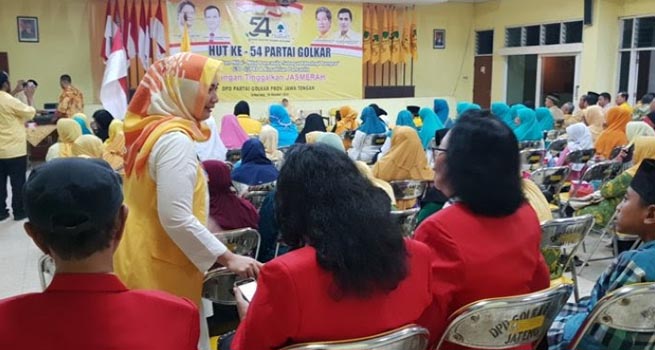 ”Semua kader harus kerja keras memenangkan Pileg dan Pilpres. Dalam hal ini sesuai keputusan partai, kita mendukung Pak Joko Widodo dan KH Ma’ruf Amin,”ujarnya dalam membuka acara tasyakuran HUT ke -54 di Kantor DPD Golkar Jalan Kiai Saleh Semarang, Jumat sore (19/10/2018).