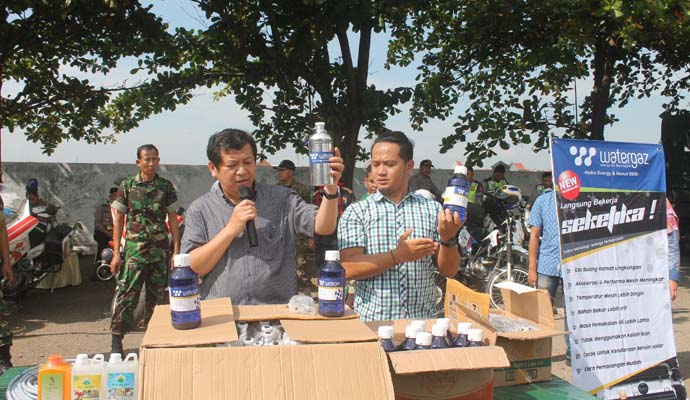 “Watergaz” Temuan Ahli Fisika alumni ITB, coba diperkenalkan kepada masyarakat Brebes. Sebagai pendahuluan, teknologi ini dipasang di mobil dan motor dinas Pemkab, Polres dan Kodim 0713 Brebes.