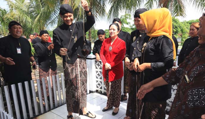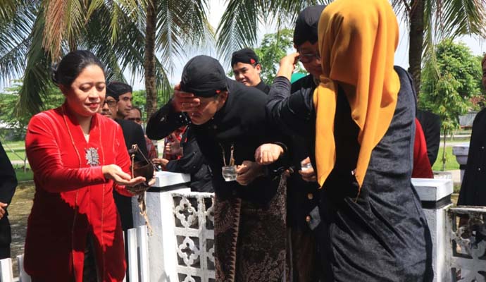 Ganjar dan Puan kemudian bergantian mengambil air dari sumur itu. Tanpa ragu, Ganjar langsung meminum air sumur yang diambil menggunakan batok kelapa itu dan menggunakannya untuk cuci muka.
