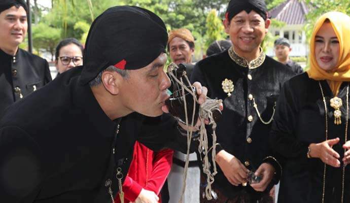 Menggunakan beskap warna hitam dan berblangkon, Ganjar mengikuti prosesi kirab budaya yang menggambarkan peristiwa pemindahan pusat pemerintahan Kabupaten Banyumas, yang semula di Banyumas dan pindah ke Purwokerto pada masa Pemerintahan Adipati Arya Sudjiman Gandasubrata (Bupati ke-20) pada tahun 1937 itu. Sementara, Menko Puan mengenakan kebaya berwarna merah. Keduanya berjalan beriringan didampingi Bupati Banyumas Achmad Husain dan sejumlah tokoh menuju Pendopo lama tersebut.