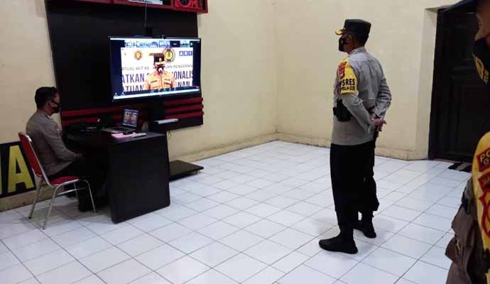 Kapolres Gowa AKBP Budi Susanto, S.I.K mengikuti peringatan Hari Ulang Tahun (HUT) Satuan Pengamanan (Satpam) yang ke 40 di ruangan Vicon Polres Gowa, Selasa (2/1) pagi.