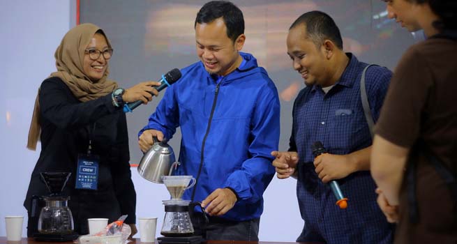 “Tahun ini lebih ramai karena kompetisinya lebih lengkap, pesertanya lebih banyak. Ada juga pameran kopi-kopi yang dihasilkan dari daerah di Bogor, salah satunya kopi arabika Babakan Madang yang tadi diseduh Kang Bima,” jelas Eka, pemilik kedai kopi Kemenady..