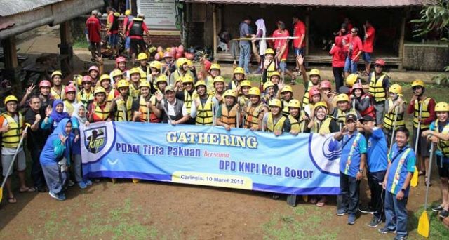 INILAHONLINE.COM, BOGOR – PDAM Tirta Pakuan Kota Bogor bersama pengurus Dewan Pimpinan Daerah (DPD) KNPI Kota Bogor memperkuat kebersamaan dan sinergitas dengan arung jeram (rafting) menyusuri Sungai Cisadane, Sabtu (10/3/2018).