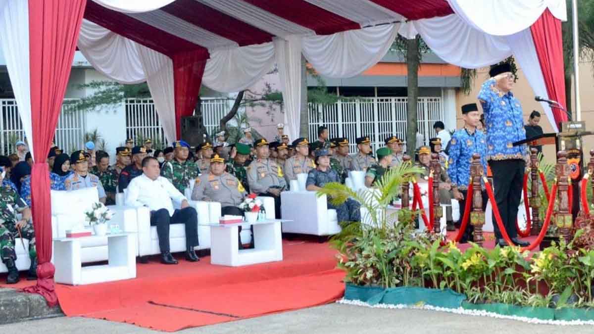 INILAHONLINE.COM, CIBINONG — Plt. Bupati Bogor, Iwan Setiawan memimpin Apel Gelar Pasukan Operasi Ketupat Lodaya 2023 dalam rangka Pengamanan Idul Fitri 1444 H, di Stadion Pakansari, Cibinong, Senin (17/4). Menurutnya, kegiatan ini merupakan wujud nyata sinergitas Pemerintah Kabupaten (Pemkab) dengan Polri, TNI, dan seluruh stakeholder terkait, dalam rangka mengamankan mudik dan perayaan Idul Fitri.