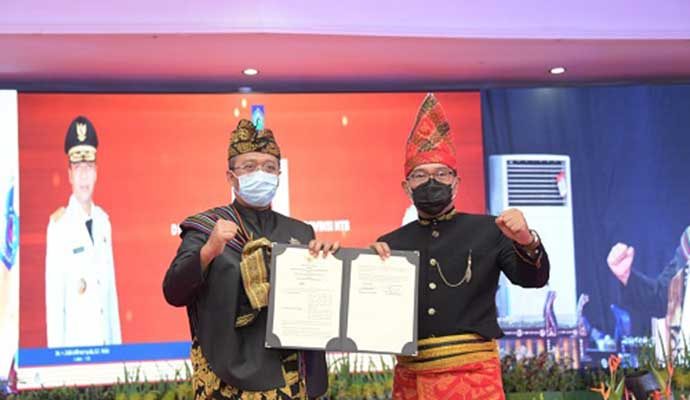 Kerja sama tersebut ditandai dengan penandatanganan Memorandum of Understanding (MoU) yang dilakukan Gubernur Jabar Ridwan Kamil dan Gubernur NTB Zulkieflimansyah di Gedung Graha Bakti Praja, Kota Mataram, Kamis (17/12/2020).