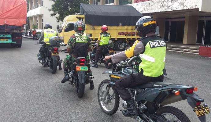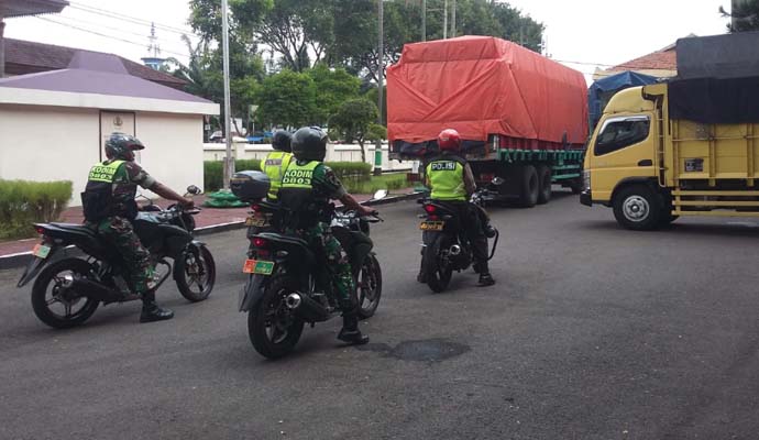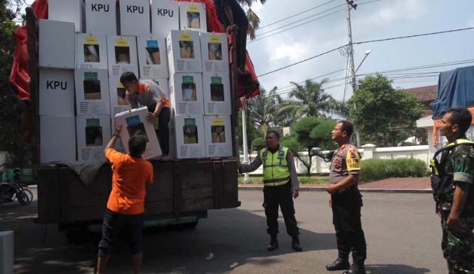 Sinergitas TNI dan Polri dalam Hal ini Jajaran Kodim 0803/Madiun dan Polres Madiun melakukan pengawalan pendistribusian logistik kotak suara Pemilu Pileg dan Pilpres 2019 yang di lakukan oleh petugas KPU Kabupaten Madiun, Sabtu (13/4/2019).