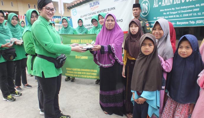Jumat Berkah Persit Kartika Chandra Kirana Koorcab Rem 071 PD IV/Diponegoro dipimpin langsung Ketua Persit Kartika Chandra Kirana Koorcab Rem 071 Ny. Anita Dani Wardhana didampingi Ketua Persit Kartika Chandra Kirana Cabang XVI Kodim 0701/Banyymas bersama pengurus Persit Kartika Chandra Kirana Koorcab Rem 071 dan Cabang XVI Kodim 0701/Banyumas.