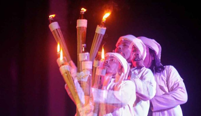Hasilnya adalah pertunjukan multisensorial. Tradisi dan modernitas saling berdialog di atas panggung.