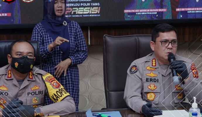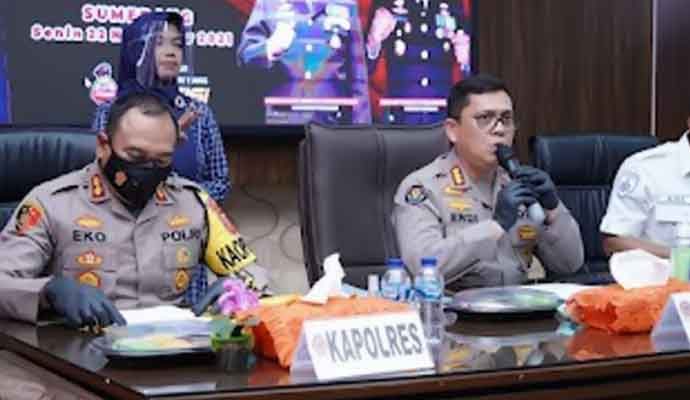 INILAHONLINE.COM, SUMEDANG — Kabid Humas Polda Jabar, Kombes Pol. Erdi A. Chaniago S.I.K., M.Si., didampingi Kapolres Sumedang AKBP. Eko Prasetyo Robbyanto, S.H., S.I.K., Kasat reskrim AKP. M. Ade Rizky F, S.I.K., M.A., Danramil Sumedang Kota Kapten Inf. Dede Baharudin, Kanit Satwa Dir Samapta Polda Jabar Iptu Novian Yuga P dan perwakilan BPBD Kabupaten Sumedang menggelar konferensi pers bertempat di aula tribrata Polres sumedang Polda Jabar telah digelar konferensi pers pengungkapan, Senin (22/11/2021).